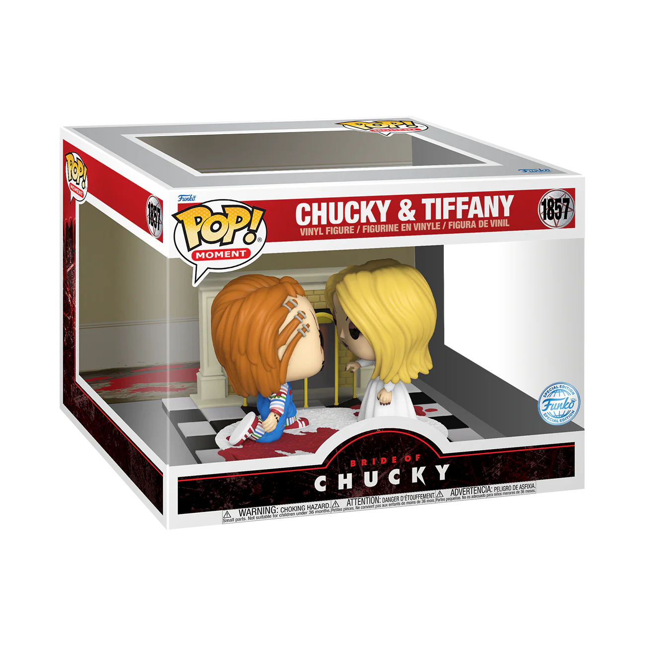 Do you have a bleeding heart? Pop! Chucky and Pop! Tiffany do too! They aren’t interested in playing around; they’re ready to stab their way into your Bride of Chuckycollection as this exclusive Pop! Moment featuring Chucky’s proposal to Tiffany. Carve up some room in your Chucky lineup for these nefarious newlyweds. Vinyl collectible is approximately 9.9 cm tall.