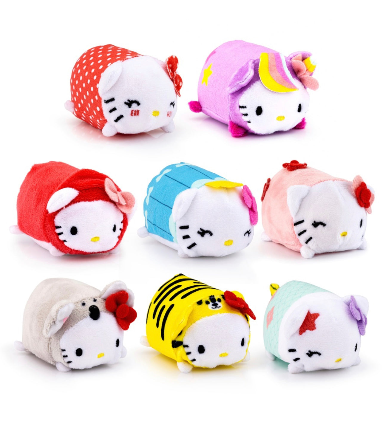 These official Hello Kitty plush toys are packaged in super cute boxes with paper bows and each come with a unique sticker, making them a perfect gift or collectible. Embrace the fun and cuteness of Hello Kitty with each squish and squeeze, you'll want to collect them all! (Each sold separately)