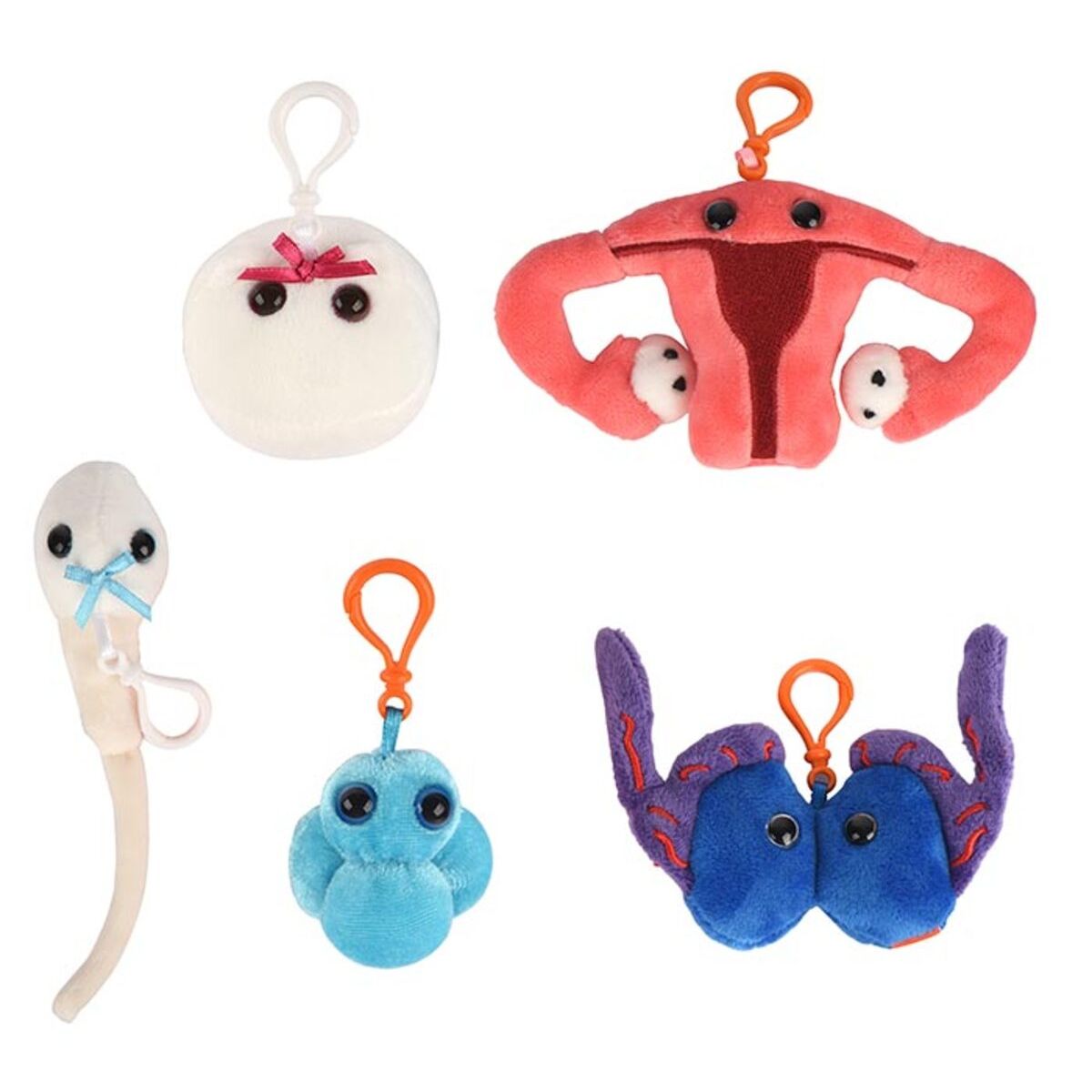 Let's Get It On themed gift box includes these mini microbes: Egg Cell, Sperm Cell, Zygote, Testicles and Uterus.