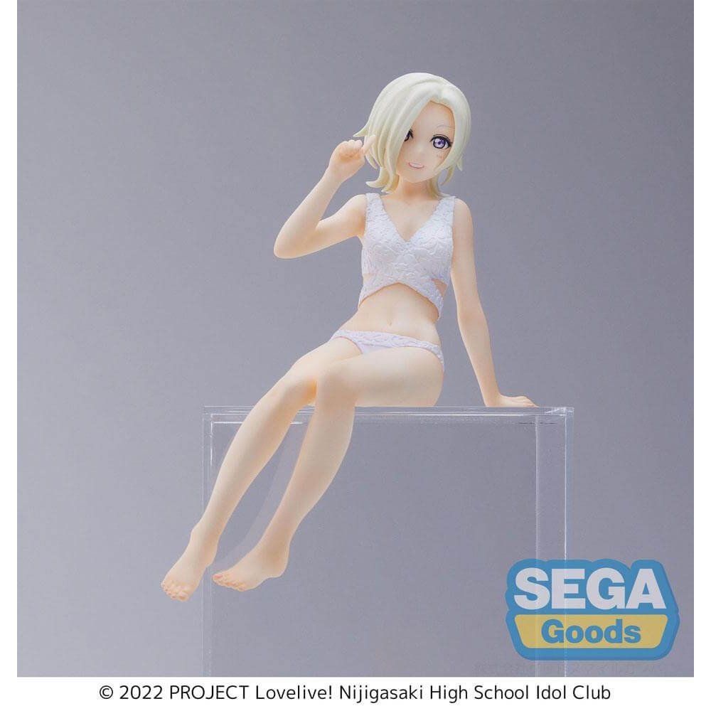 From the "Love Live! Nijigasaki High School Idol Club" anime series comes this PVC statue figure of Mia Taylor taking a break in her cute swimsuit, part of the PM Perching series made by SEGA. Mia stands 14cm tall and comes with a base in a window box packaging.