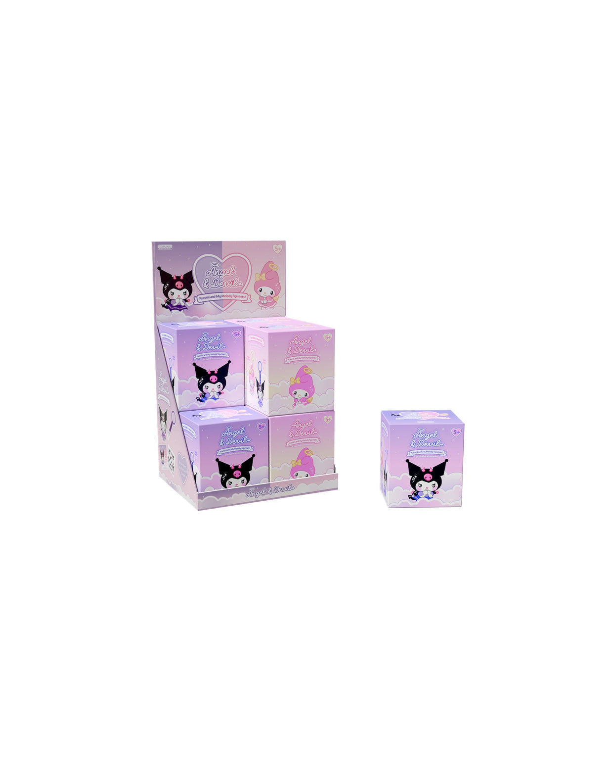 Includes: Kuromi/ My Melody Figure, Hanger Strap, Postcard and Sticker Sheet.
