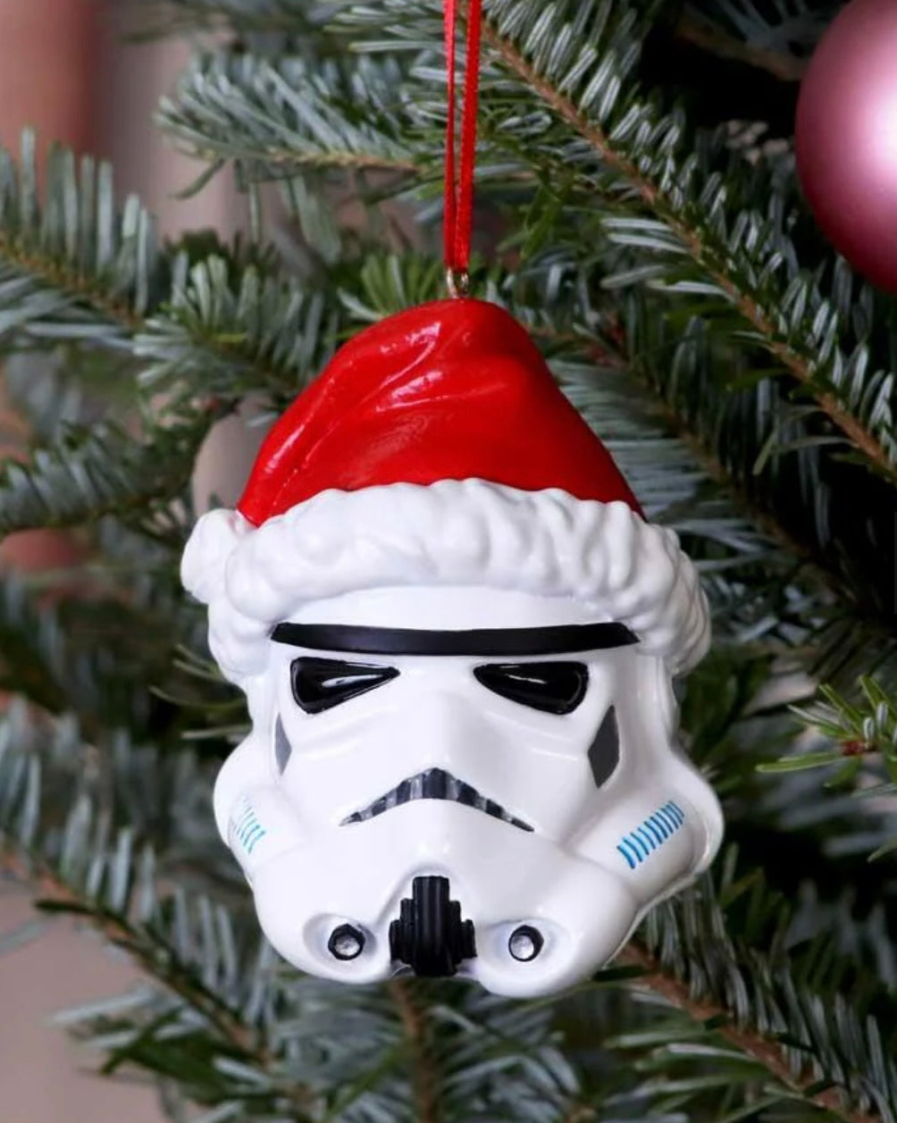 Known for their white suits and shocking aim, the Stormtrooper is easily noticeable by all! Based on the original moulds created by Andrew Ainsworth of Shepperton Design Studios, this range of Original Stormtrooper merchandise captures their character and are as close as it gets to the original film props. Here we can see a Trooper armed with a sack full of presents, let?s hope he able to deliver these on time. Cast in the finest resin before being expertly hand painted, this Stormtrooper hanging ornament makes for the perfect addition to any Christmas collection.