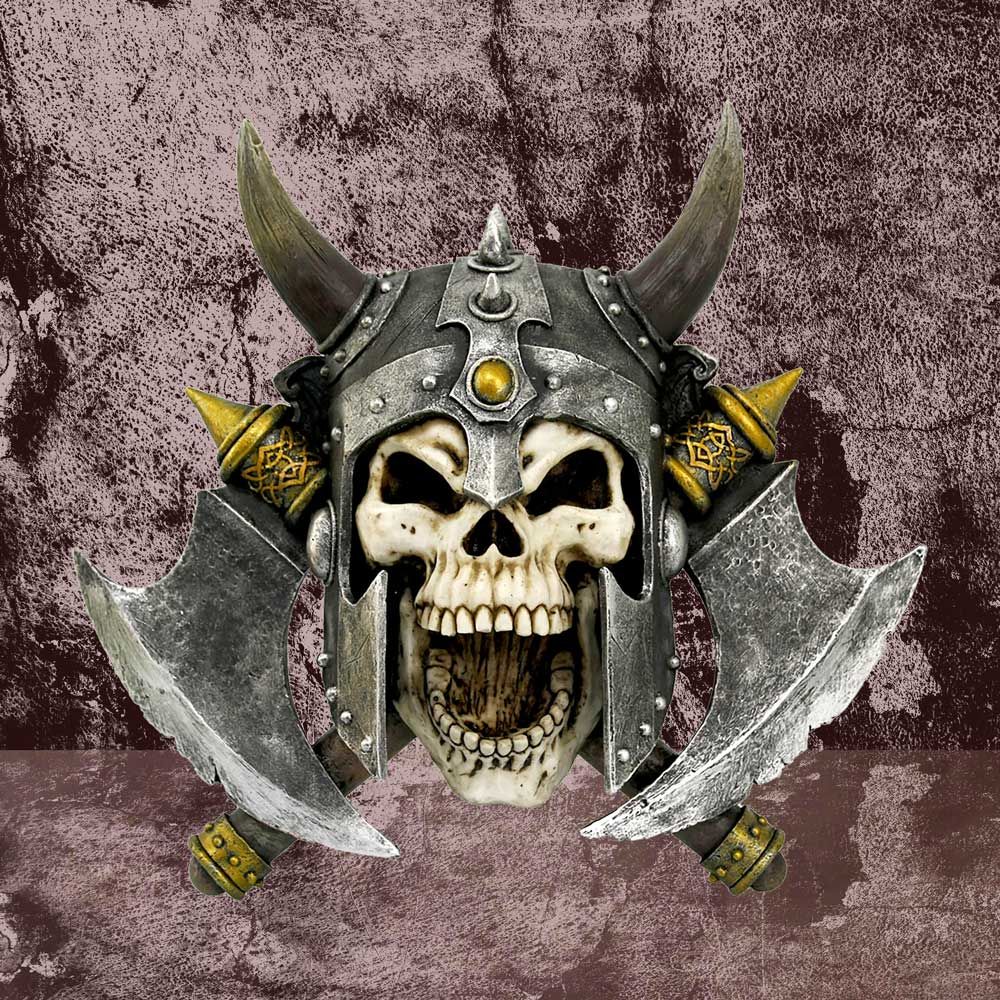 Menacing Viking skull wall plaque.